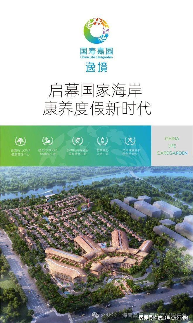 国寿嘉园·逸境康养度假基地占地面积119000平方米,建筑面积1040000平方米,楼盘类型为普通住宅,花园洋房,大平层,联排,酒店写字楼,建筑形式为板楼、砖楼、低层、小高层。紧邻三亚国际免税城、301医院海南分院、南田温泉,配备369套养生酒店套房、12000平米健康管理中心、6000平米医疗健康步行街、特色美食街、国寿情怀书院、艺术中心等,依托优质的自然资源及丰富的配套设施,遵循“医、食、住、行、文、娱、思、享、健”九大服务体系,打造具有国际领先水平的高品质康养度假基地。
