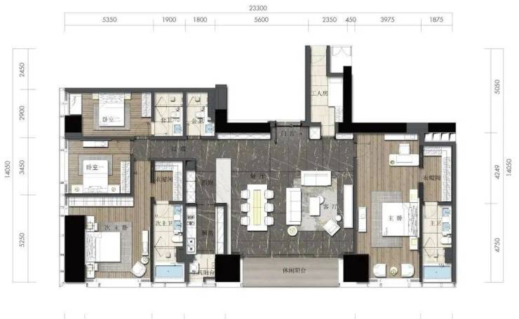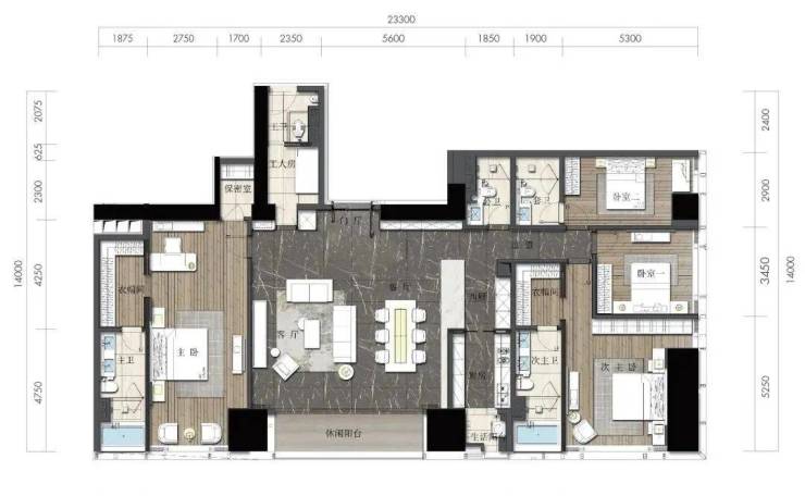 约164㎡2房2厅2卫(独立入户玄关,动静分离,约33㎡豪华主卧,承载品质生活)