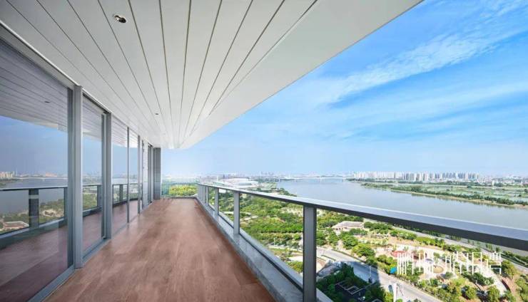 客厅开间达9.5米,尽享270°IMAX江景--桂畔海和德胜河。左转是餐厅厨房。
