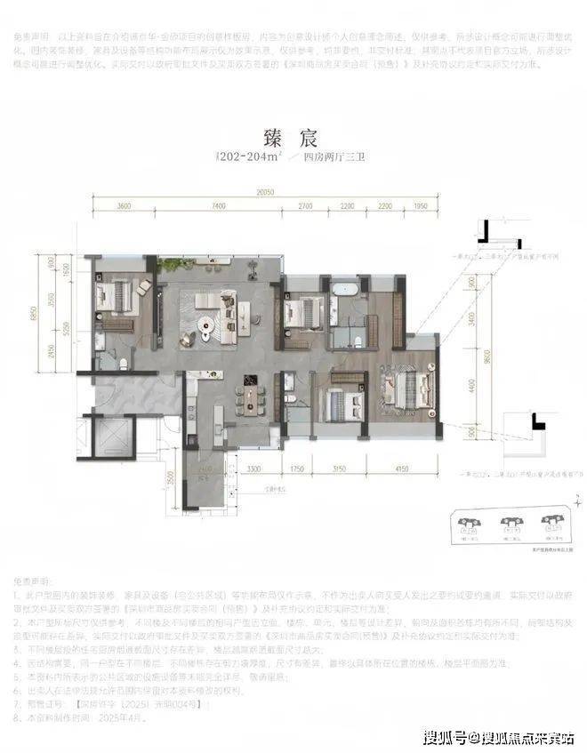 建面约202-204㎡四房两厅三卫