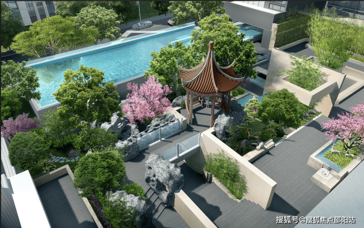 中心泳池与休闲景观相融,畅泳之际尽享美景。