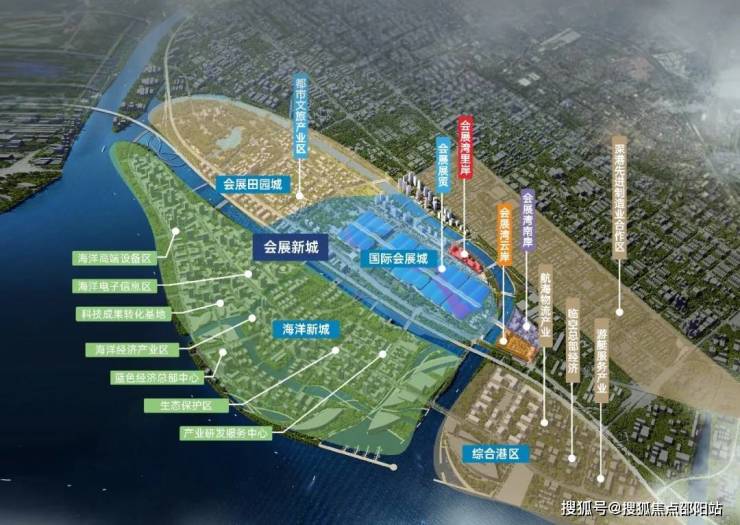 [海洋新城及会展新城]总建筑面积3284万平方米,总就业人口48.7万人,总居住人口34.05万人。
