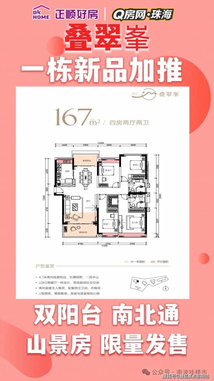 作为珠海主城区吉大近年来少有的“半山住宅”,叠翠峰坐落于板樟山森林公园南麓,推窗即可俯瞰吉大CBD全景与港珠澳大桥雄姿。项目占地约1.36万㎡,容积率仅2.0,规划199套住宅,是主城区罕见的低密社区。建筑采用现代简约风格,园林融合现代中式元素,与山体景观自然衔接,实现“户户有景”的居住体验。