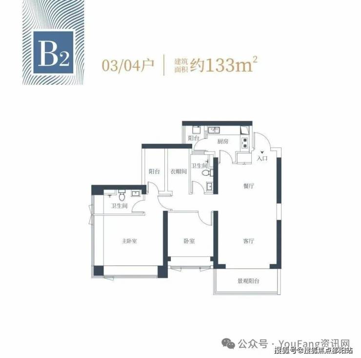 🔺1栋二单元B2户型:面积约为133㎡;