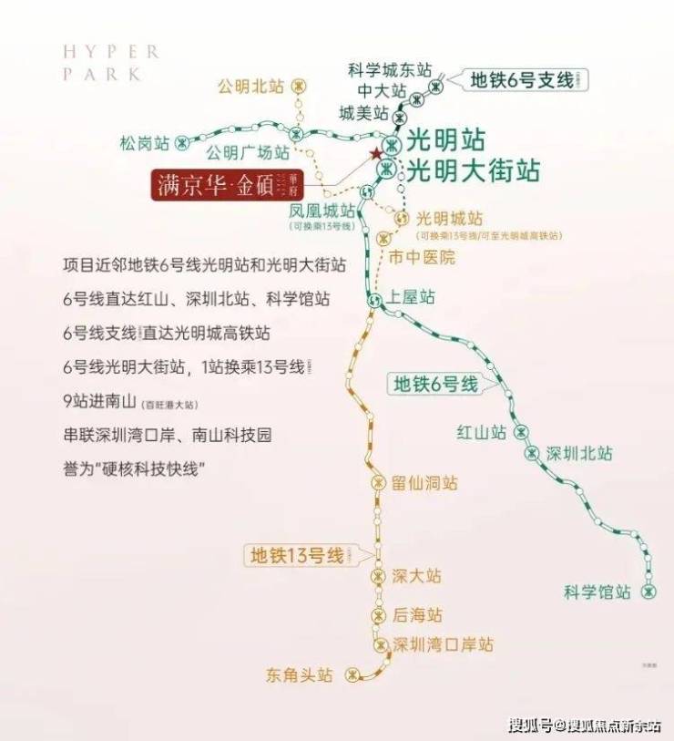 满京华金硕臻府,位于深圳光明科学城"一心两区"核心位置,紧邻地铁6号线光明站(步行约5分钟),4站可达光明城高铁站,未来还将接入规划中的地铁13号线、18号线(争取纳入)及29号线(规划中)。作为科学城中央居住区的标杆项目,金硕悦府占据着"轨道+高铁"的立体交通优势,为居住者提供高效通勤体验。科学城作为国家级科技创新枢纽,已集聚合成生物研究设施、脑解析与脑模拟设施等重大科技平台,2024年GDP增速达8%,预计2025年常住人口突破120万,为房产增值提供强劲支撑。
