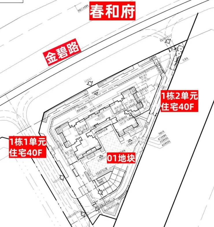 01地块:总占地面积约0.51万㎡,总建筑面积约5万㎡,计容建筑面积约3.42万㎡,容积率6.32,绿化率30%,共由2栋40层住宅组成,分别是1栋1/2单元,商业面积3100㎡。