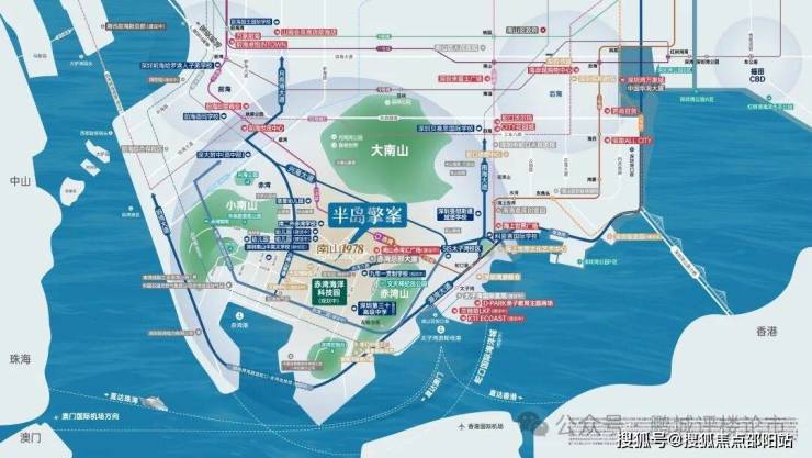 依托3山1海的资源禀赋优势,以“两环、三心、三轴、六大街区组团”的蓝图规划,打造屹立深圳湾区的世界半岛生活。