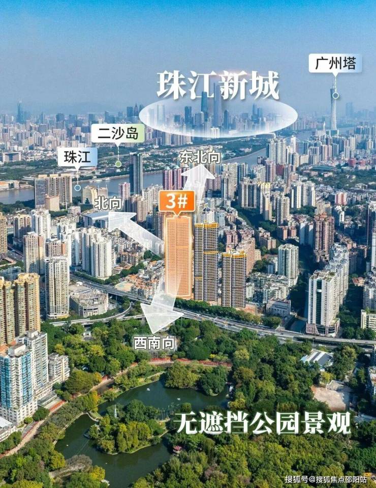 景观升级:东望中大、广州塔;北望二沙岛珠城,西南向直望晓港公园