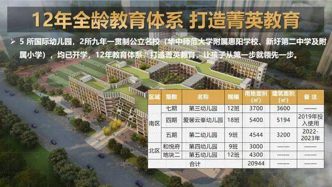 家门口全龄名校教育 12年全龄教育体系,家门口5所国际幼儿园,2所九年一贯制公立名校(华中师范大学附属惠阳学校、新圩第二中学及附属小学),均已开学。