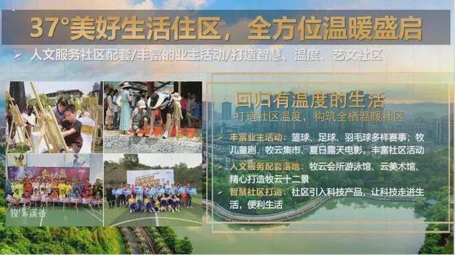 项目里面配套有1.6万平的天然湖泊,牧云会馆会所,星级酒店,健康服务中心,云美术馆等。