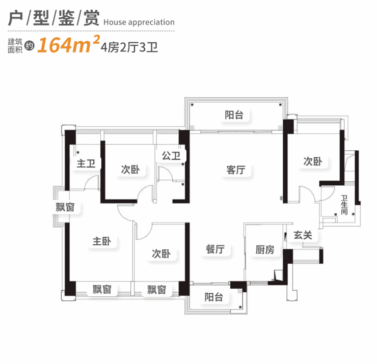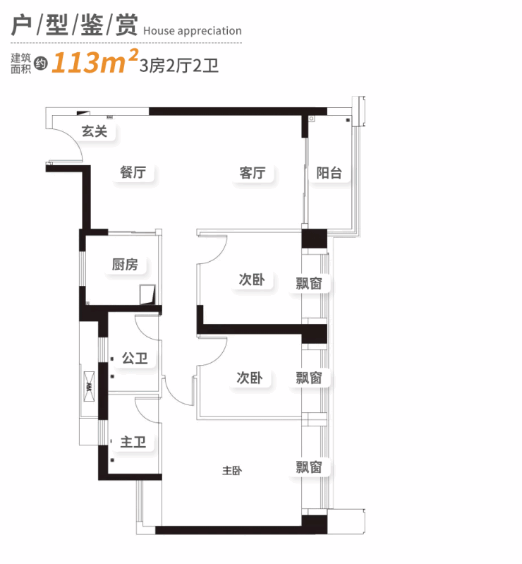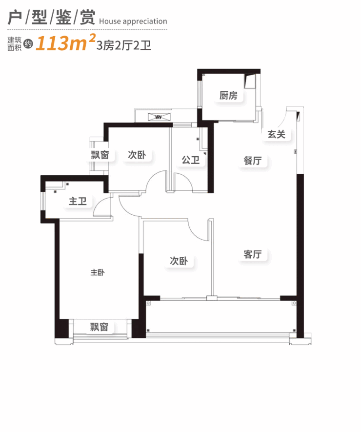 【产品面积段】约113㎡3房2卫、约164㎡4房3卫