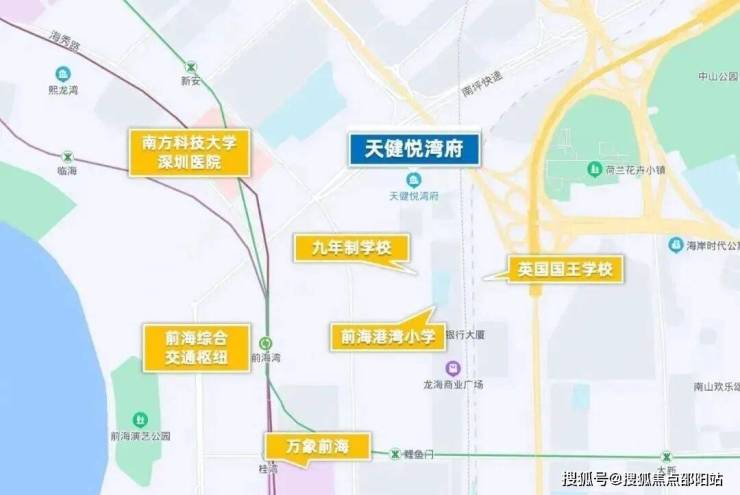 天健悦湾府项目便位于前海桂湾的住宅,这里是前海最成熟的片区,并且项目周边拥有多个重点配套设施或城市级的名片地标。