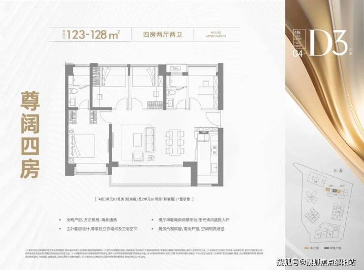 123-128㎡(四房两卫)轻奢阔绰户型,尊享高阶生活品质!