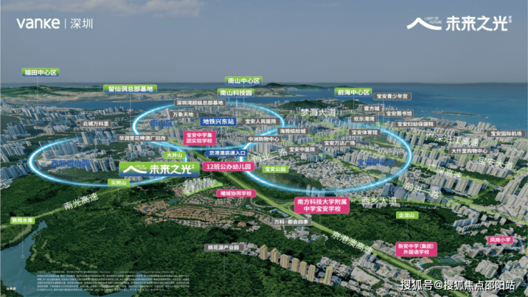以项目为中心,2公里即可到达宝安中心,4公里到留仙洞、5公里到南山科技园,密布的轨交路网更是进一步将未来之光与各个核心点相连接。