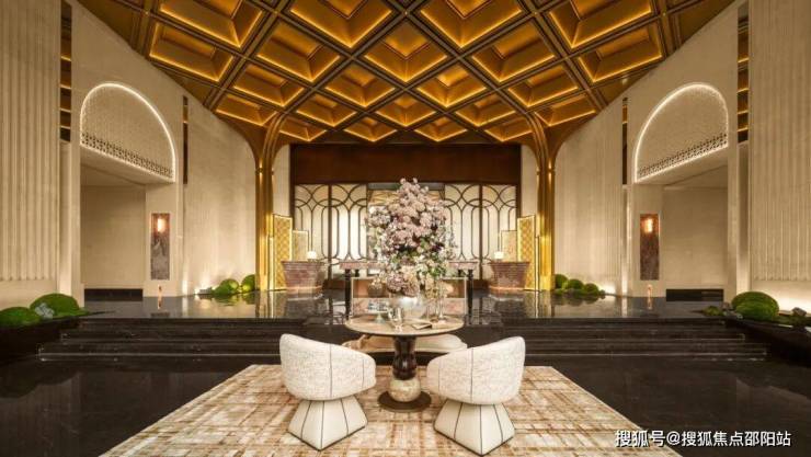 门庭,是恭迎八方来宾的第一空间。项目以非凡尺度,铺陈一场奢华的迎宾仪式——抵达之时,约51米恢弘跨度的「金风玉廊」率先映入眼帘,20根7米香槟金立柱巍峨耸立,尽显气度与庄重。
