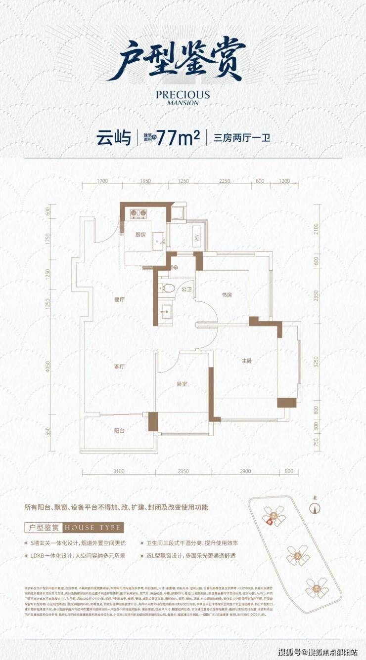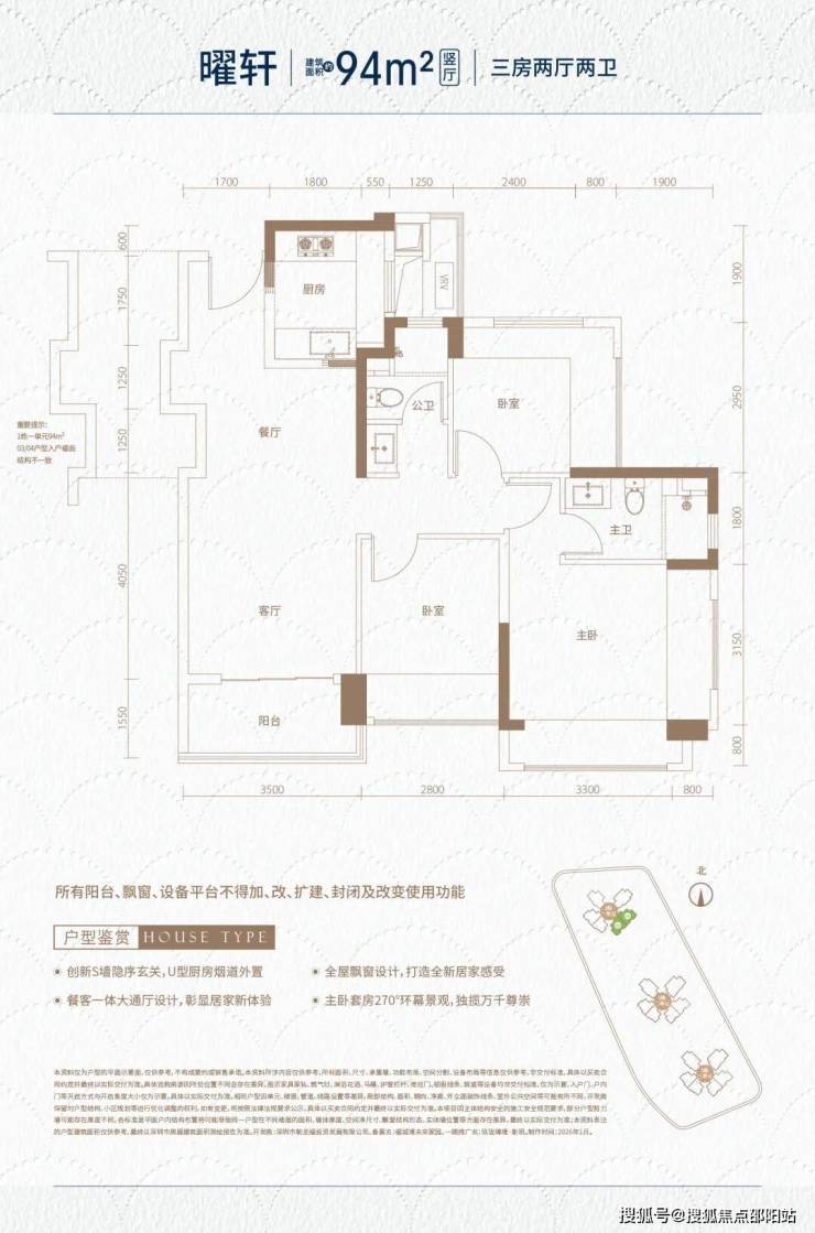 项目主推建面约77-134㎡的三至四房户型,预计将在年后拿预售许可证,首推1-1单元涵盖约78㎡三房一卫、86-95㎡三房两卫及113㎡四房两卫等多种选择。其中113㎡户型采用横厅设计,客餐厅开间约6.2米,得房率约95.73%,兼顾空间实用性与居住舒适度。