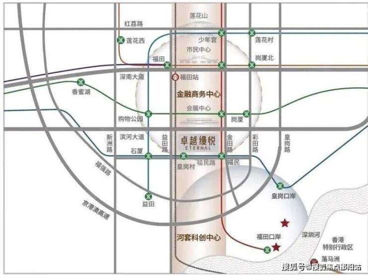卓越缦悦所在的皇岗片区位于深圳城市中轴线上,北接莲花山公园和CBD,南至深圳河对望香港,是深圳城市地标轴线的重要一环。