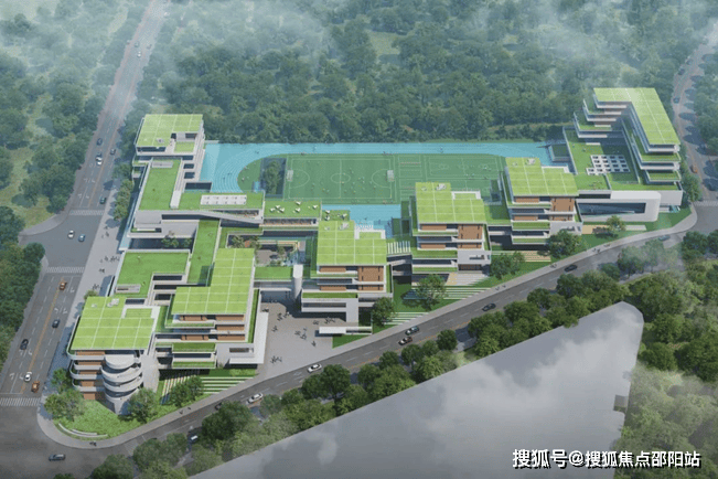 新建54班九年一贯制学校,提供2520个学位,包含初中部、小学部、体育馆、教师宿舍、图书馆与报告厅、餐厅等。
