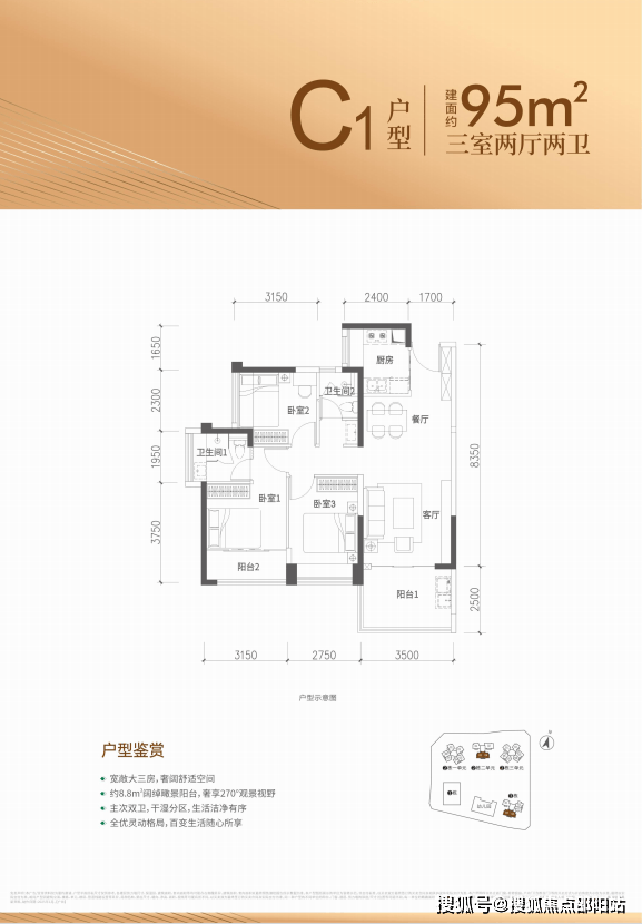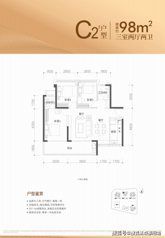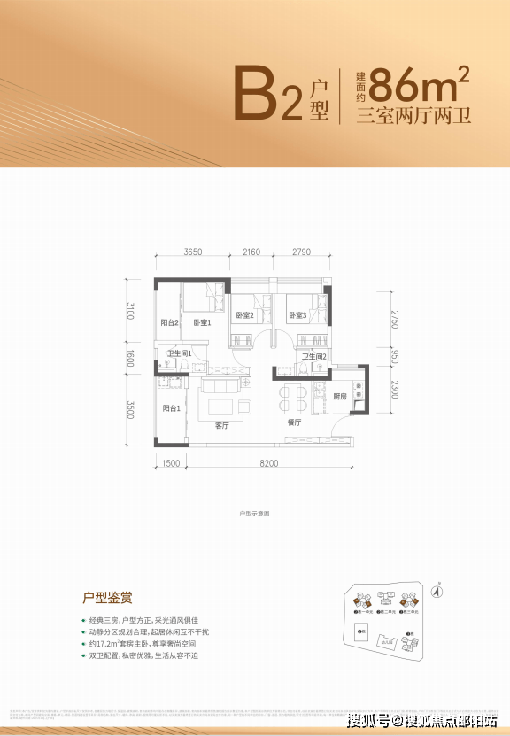 约86-98㎡3房2厅2卫