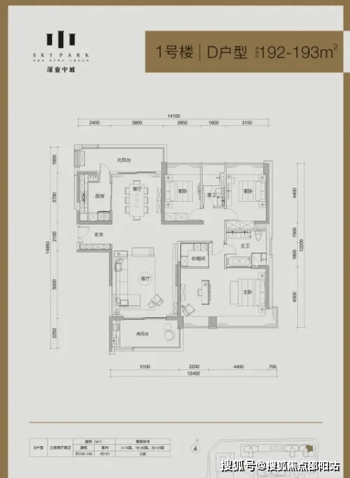D户型:192-193㎡3房2卫(可改4房),套内面积151㎡,户型与B户型类似,同样享受香蜜公园景观。