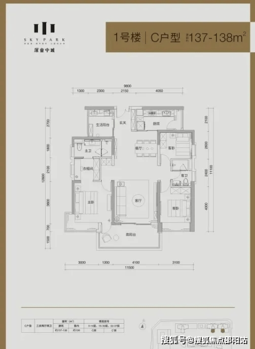 C户型:137-138㎡3房2卫,套内面积108㎡,双龙抱珠户型,主卧连接南向观景阳台,宽敞明亮。