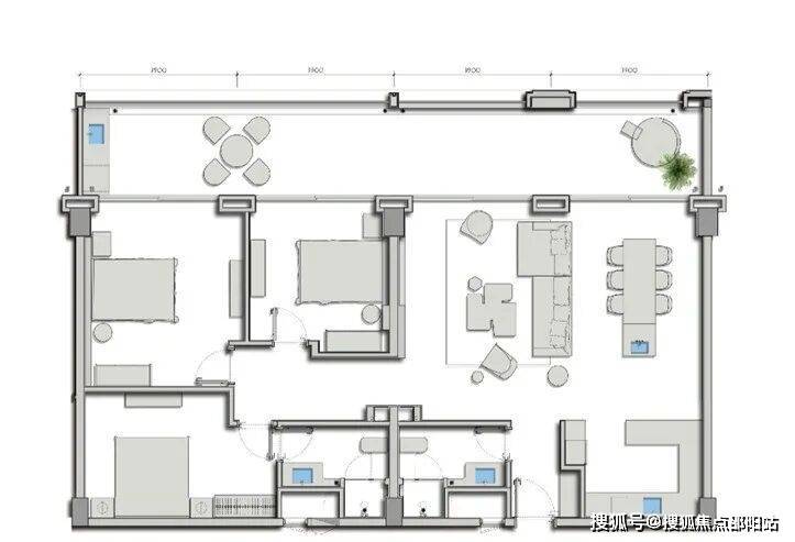 J1户型:四室三厅四卫(100平米院子、500平米院子)毛坯交付