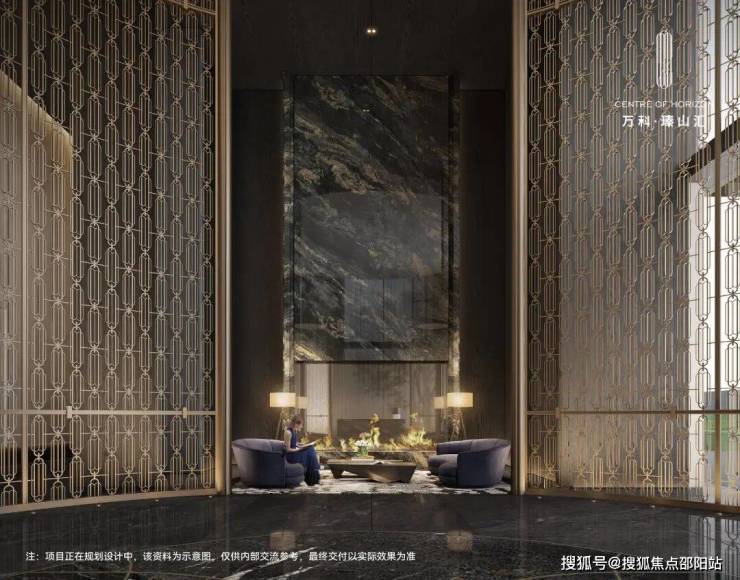 比如社区大堂,做到了超11米的超级挑高,加之高难度的石材和金属设计融合,让空间呈现出无与伦比的质感。