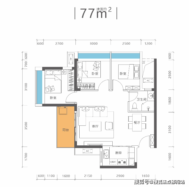 端头位:总赠送约270㎡,总面积达450㎡,赠送率160%;花园面积约100㎡