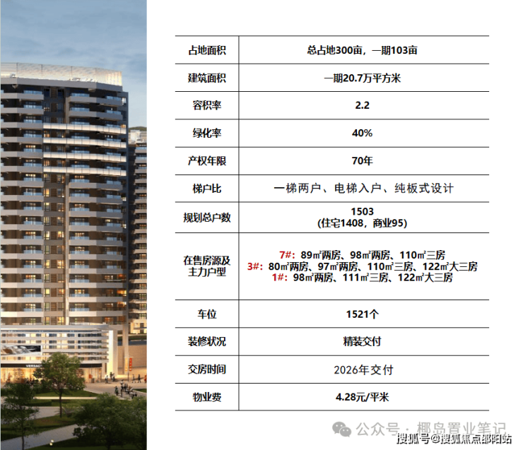 ③容积率2.2,低于迎宾路沿线大部分项目