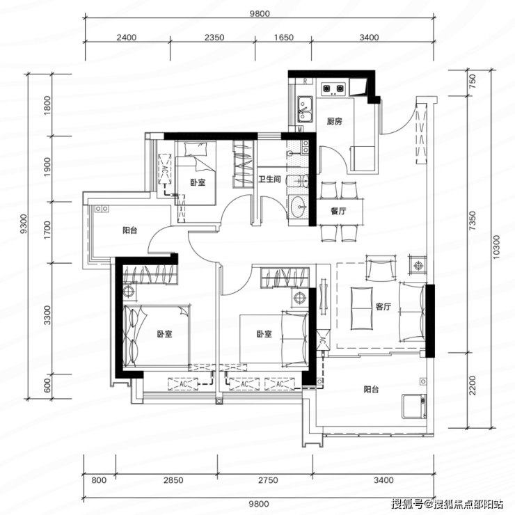 ✅ B06 户型:约109㎡ 阔绰四房两厅两卫: