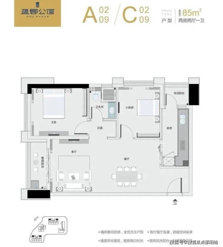 融汇公寓、办公、商业等多功能配套,以公寓作为核心产品,涵盖52-127㎡1-3房多重轻奢空间。