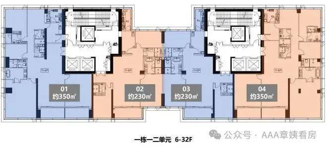 1A栋6-20楼单价:22-27万按揭约:7762-9377万一次性约:7517-9081万01比04户型贵1403万,层差26万