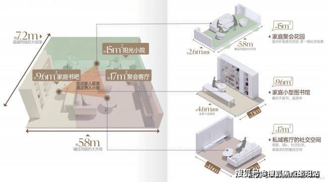 整体三开间朝南布局,使得拥有更多采光同时尽揽一园三堂四季风景,室内鲜氧充沛穿行。