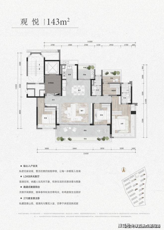 建面约143㎡的户型是实实在在的王牌,已经没有任何将就之感,做到了远超竞品的越级享受。