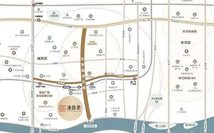 项目楼下100米就是6号线北京路站,另外步行600米就是2号线以及6号线交汇站海珠广场站,珠江新城、琶洲、白鹅潭皆在项目8公里范围内。