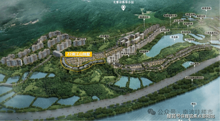 【择江山独墅,闲看千重景】的定位是倚靠“半山地势”瞰景,一墅平眺“一线西江”,风光入室,纵览江与山多重景观面的意思