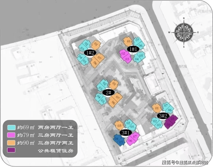 项目由3栋(5个单元)高层住宅半围合式组成,其中1栋、2栋总层高为32层,3栋总层高为28层,规划普通商品房867套,公共租赁住房100套(位于3栋)。推出共3种户型,69-78-89㎡ 2-3房,