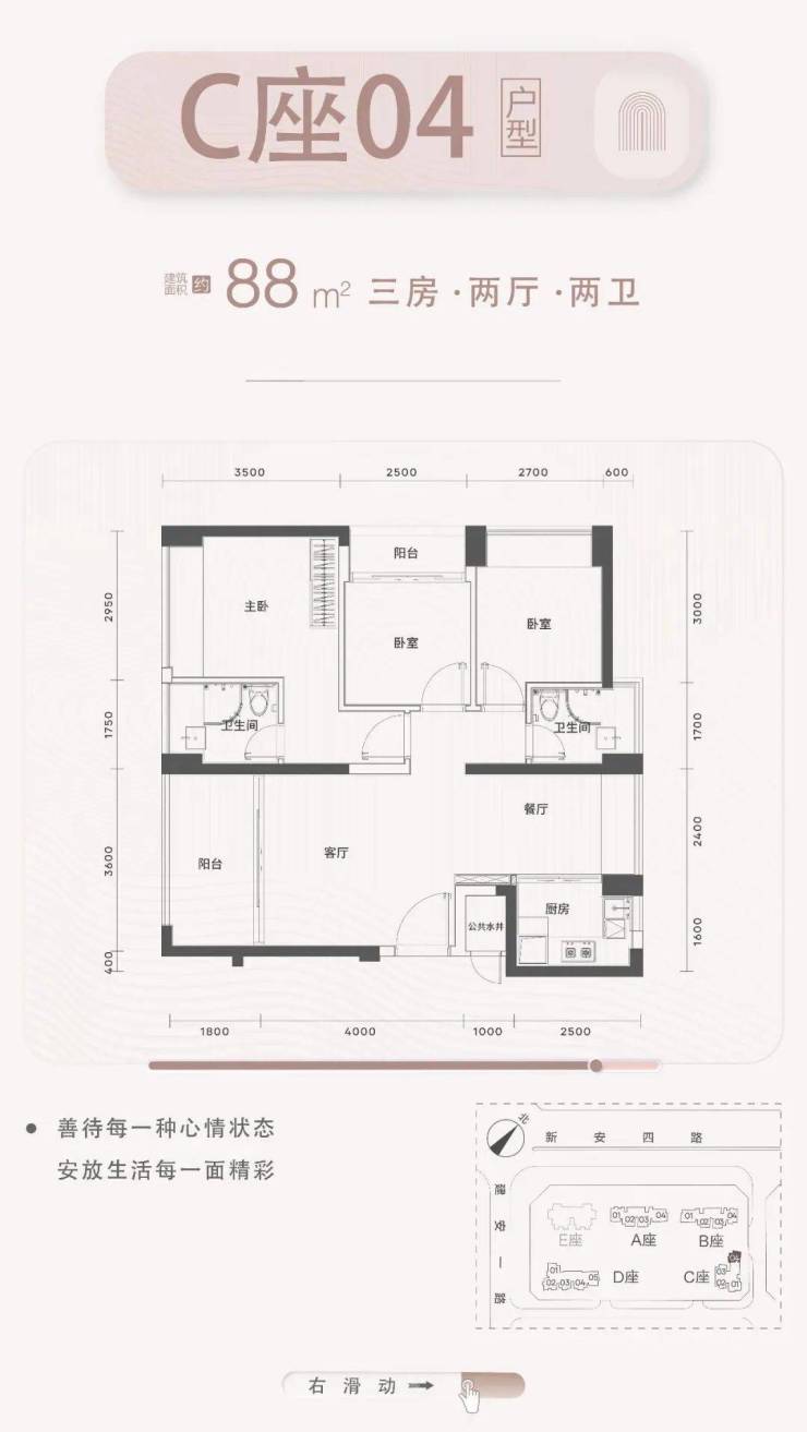 梯户比:A-C座2梯4户,D座2梯5户