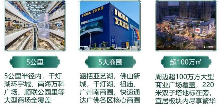 ·3公里范围内,超100万方大型商业广场覆盖,15分钟覆盖千灯湖、亚艺、祖庙、佛山新城板块!
