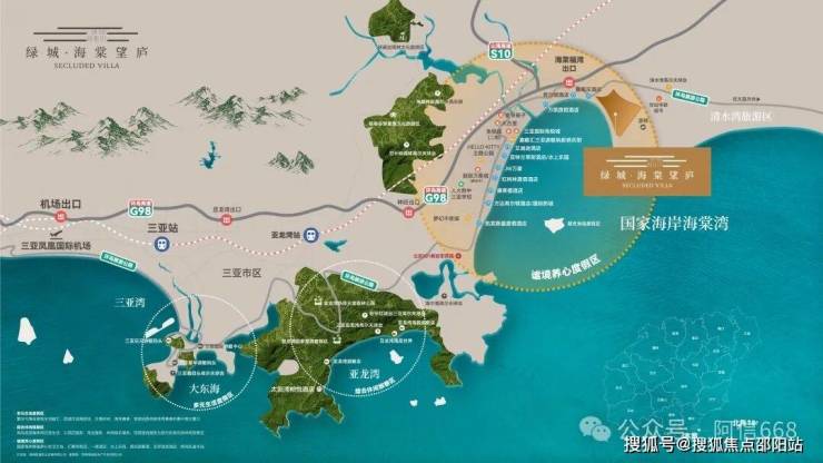 1小时度假生活圈:紧邻G98海南环岛高速,到凤凰国际机场约50公里,距离海棠湾站约10公里,1小时从容国际度假
