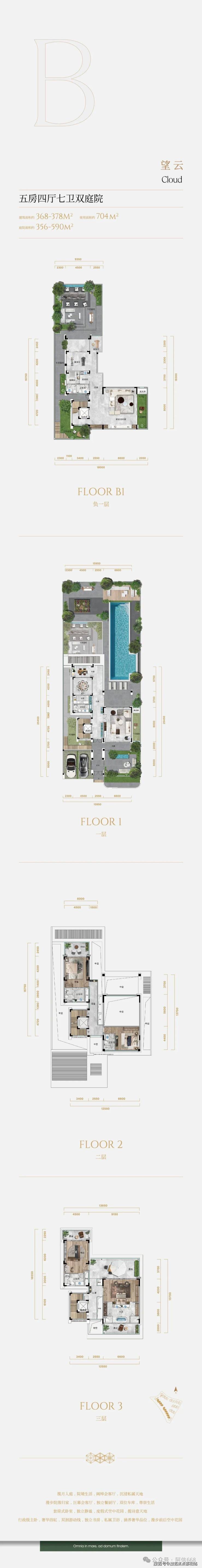 「山海之间 千平大院 独栋别墅」建面约344-445㎡独栋,千平大院的传世藏品①超低密规制,约0.3容积率②层层阔绰花园,无界度假风情③行政级主卧,奢华规制私密静逸