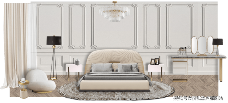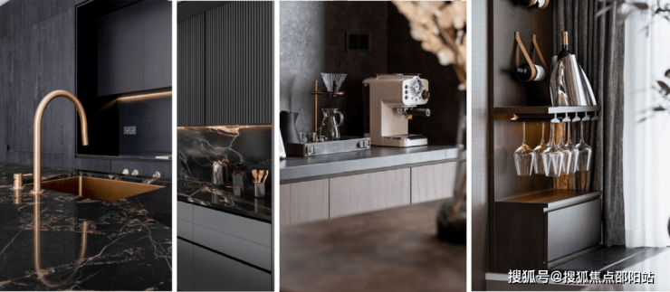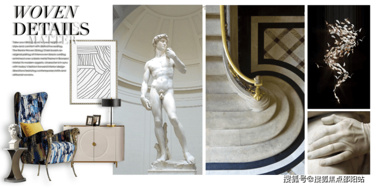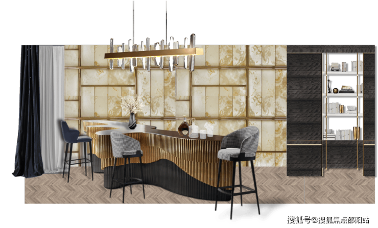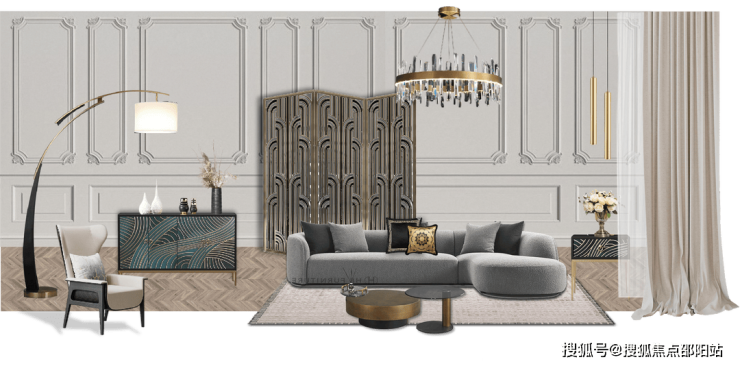 本案中采用的大理石是土,木艺是木,布艺是水,金属元素是金。大理石多变的纹理结合金属闪耀的光泽,让空间充满奢华气息的同时也倍显活泼,让生活多了点乐趣,木艺温润的质感和布艺的柔软释放自由与舒适,这四种元素在空间里碰撞融合,一起为居者打造了一个理想的品质居家空间。