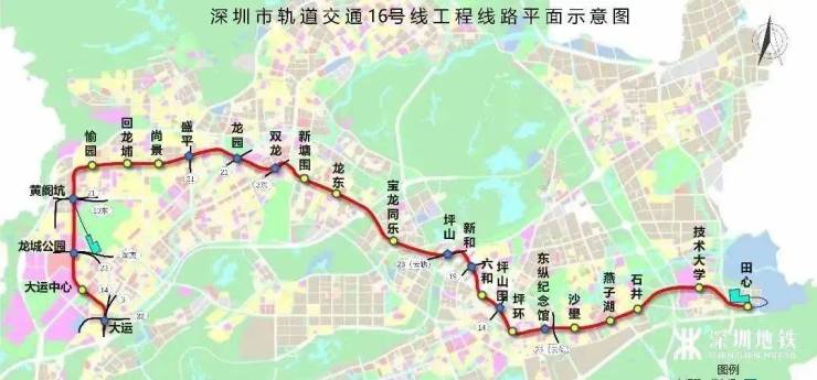 地铁16号线:连接大运新城、龙岗中心城、双龙、坪山高铁站及坪山新区等地区是东部组团内部的轨道线路。