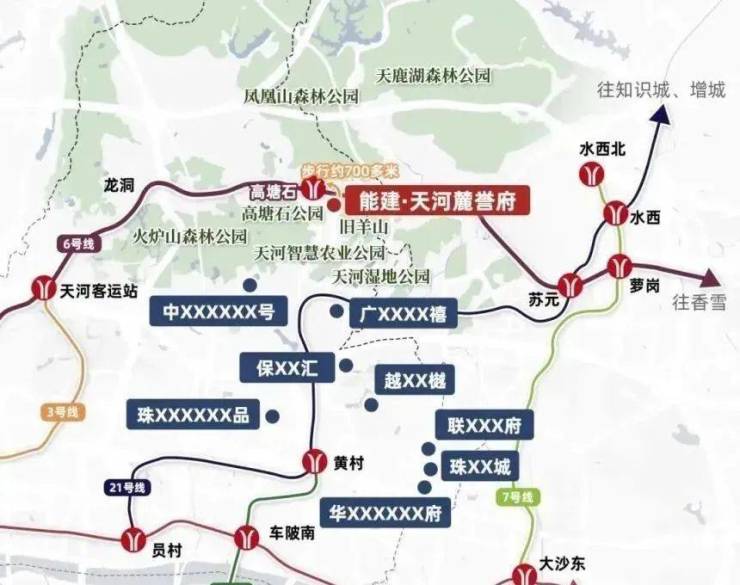 商业配套方面,现状依赖高塘石村底商,缺乏大型综合体,日常买菜、餐饮可满足,但*消费需前往龙洞商圈(车程 15 分钟)或科学城万达广场(地铁 3 站)。