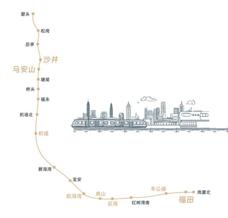 紧邻11号线沙井站约700米,5站到机场,7站通宝安中心(从马安山出发),快速通达前海湾、后海总部基地、深湾总部基地、福田中心。