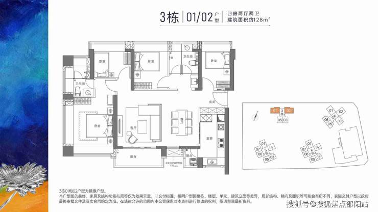 户型面积布局01/02128平四房两厅两卫