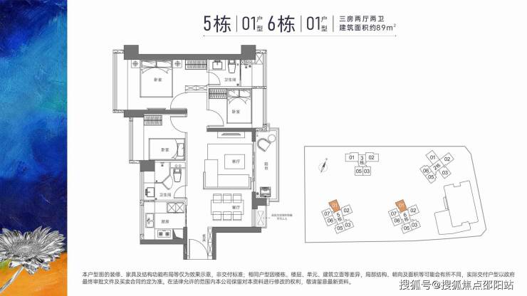 户型面积布局03/05/0689平三房两厅两卫