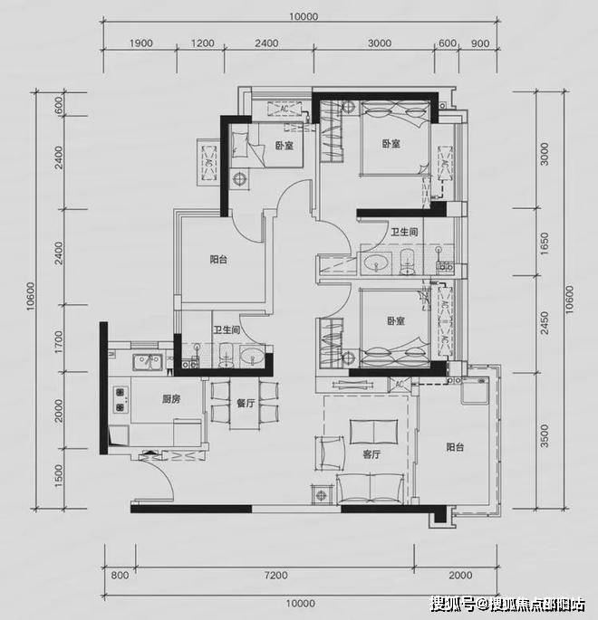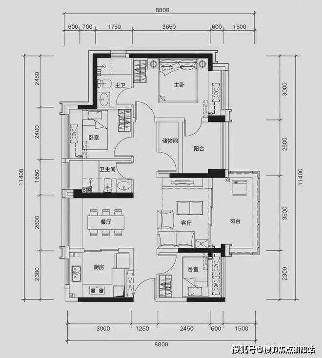 81㎡三房两厅两卫,空间利用极致,功能齐全。