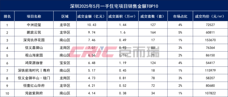 从单项目成交来看,【中洲迎玺】仍表现突出,成交金额最多达10.43亿元,本月网签127套,面积约1.44万㎡。