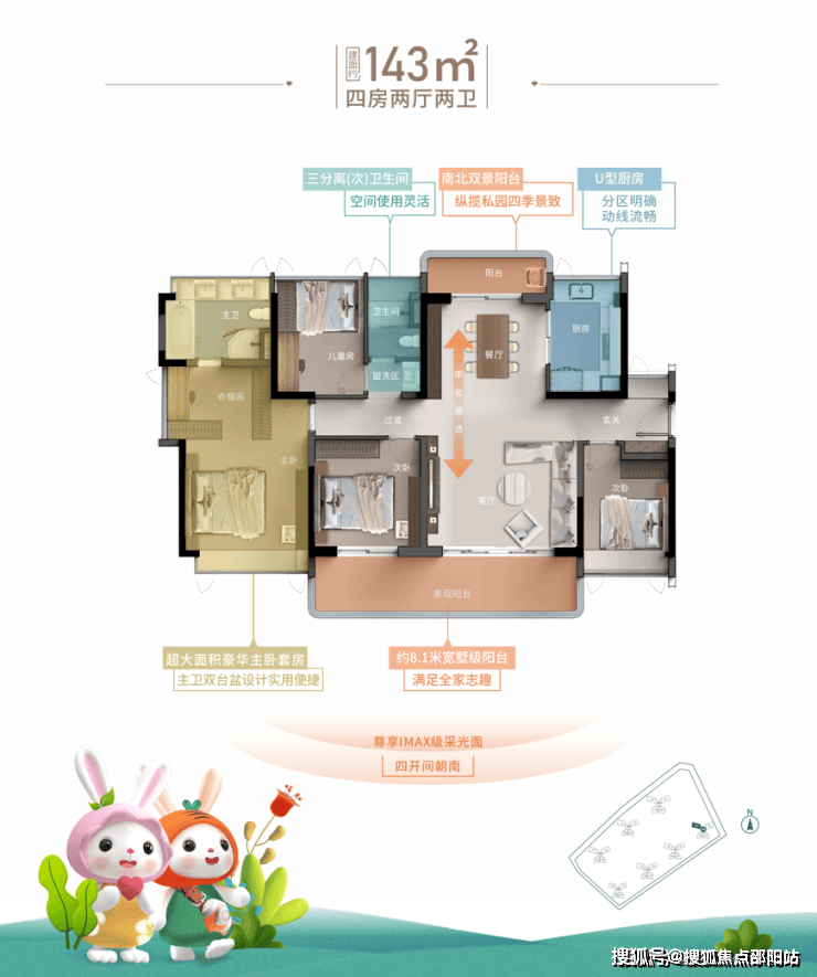 建面约143㎡四房,拥有约33㎡超大主卧空间,配备独立的衣帽间,为主人提供尊享的居家舒适体验。约8.1米横阔主阳台,4开间朝南的大户型,是改善型的优选。